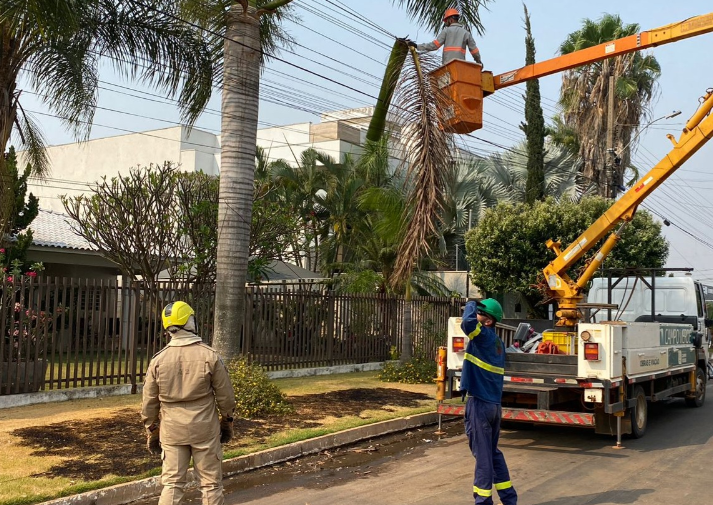 Bombeiros combatem incêndio em fios de energia