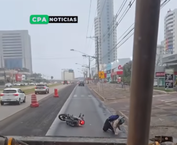 Vídeo: Desnível na Av. do CPA faz motociclista cair