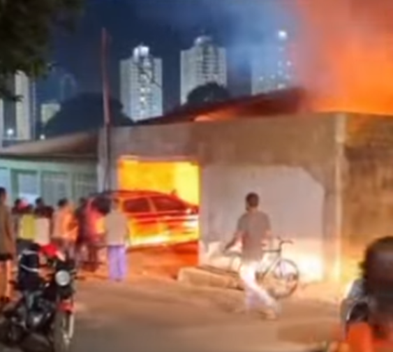 Casa pega fogo no bairro Jardim Renascer; Vizinhos ajudam retirar veículo
