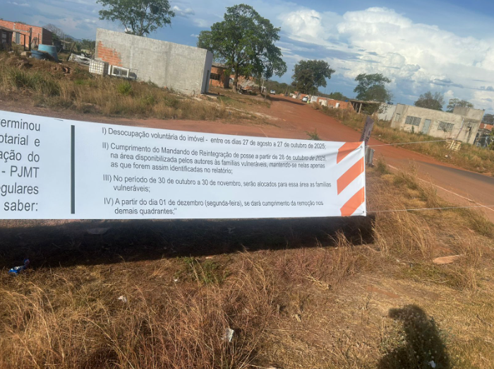 Placas de reintegração de posse são afixadas no Contorno Leste com acompanhamento da PM