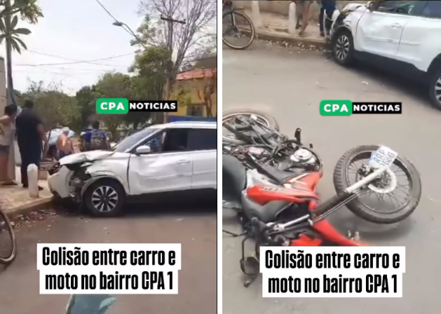 Colisão entre carro e moto é registrado no bairro CPA I, em Cuiabá
