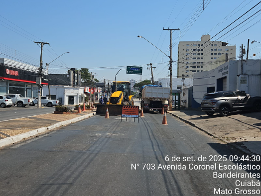 Avenida Coronel Escolástico é interditada para reparo emergencial em rede de água no bairro Areão