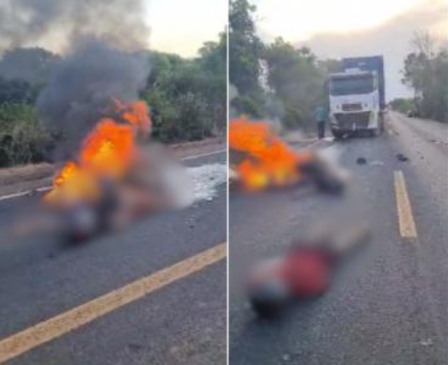 Vídeo: Dois jovens morrem em colisão frontal entre moto e caminhão