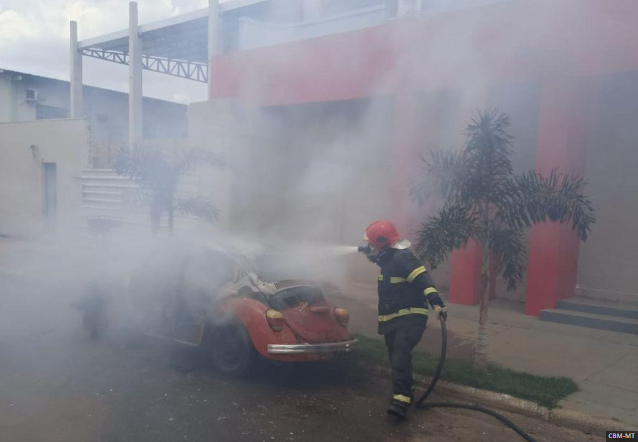 Bombeiros controlam incêndio em Fusca no centro de Campo Novo do Parecis