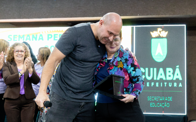 Prefeito de Cuiabá homenageia professora destaque da rede municipal