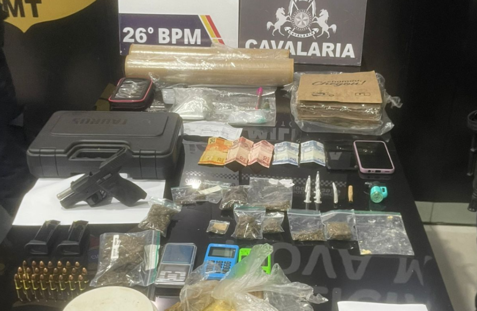 Nesta quinta-feira (26.3), uma operação conjunta da Cavalaria e do 26º Batalhão da Polícia Militar resultou na prisão de uma mulher de 32 anos por tráfico de drogas e porte ilegal de arma de fogo, no município de Nova Mutum.