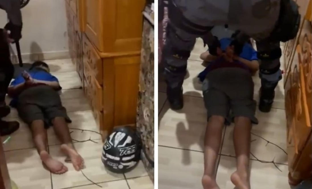 De acordo com o registro policial, a guarnição foi acionada via 190 depois que uma das vítimas, um adolescente de 14 anos, pediu socorro relatando ter sido sequestrado junto com a cunhada, de 17 anos. Ao chegar ao local, os policiais encontraram o jovem com escoriações pelo corpo, enquanto ele informava que a jovem havia permanecido sob poder dos suspeitos, que ameaçavam matá-la.