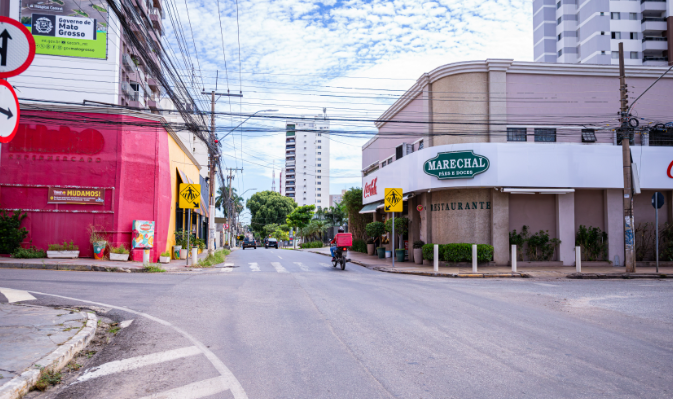 Nesta terça-feira (20), a Avenida Marechal Deodoro terá um trecho totalmente interditado ao tráfego de veículos, compreendido entre a Padaria Marechal e a Avenida Mato Grosso, em Cuiabá. A interdição ocorrerá das 8h30 às 16h30 para a execução de obras de implantação da rede coletora de esgoto e drenagem, realizadas pela Concessionária Águas Cuiabá, com autorização e apoio da Secretaria Municipal de Mobilidade Urbana e Segurança Pública.