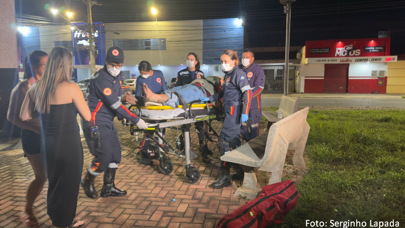Carro em alta velocidade atinge motociclista por aplicativo e passageira em Várzea Grande