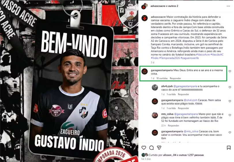 Inusitado: Torcedores do Vasco do Rio criticam contratação no Vasco do Acre