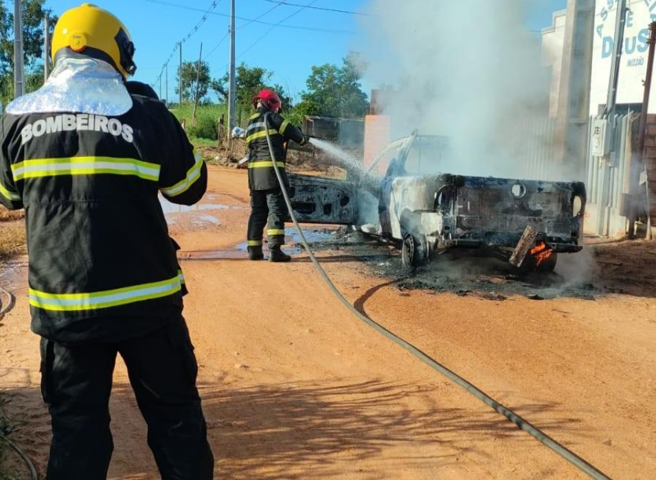 Bombeiros controlam incêndio em veículo e evitam maiores danos em Poxoréu