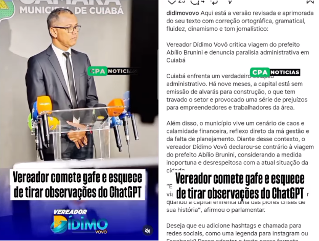 Assessoria de vereador admite uso do ChatGPT em crítica ao prefeito; Vídeo