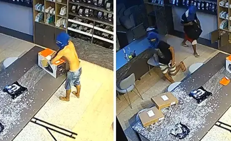 Trio arromba loja de celulares durante a madrugada e foge com aparelhos; Vídeo
