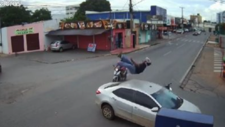 Vídeo mostra colisão entre moto e carro em Várzea Grande