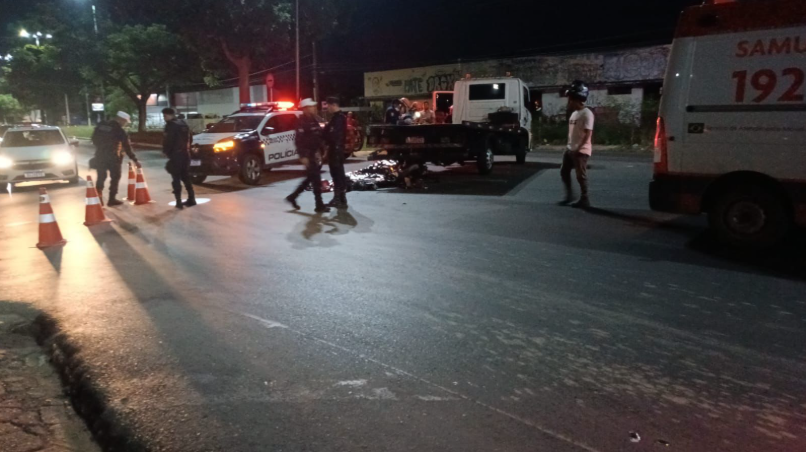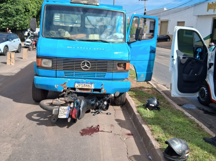 Mulher morre após colisão entre moto e caminhão em Cuiabá; Vídeo