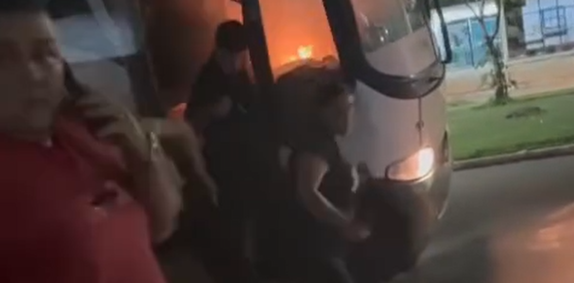 Ônibus universitário pega fogo e jovem fica ferido em MT; Vídeo
