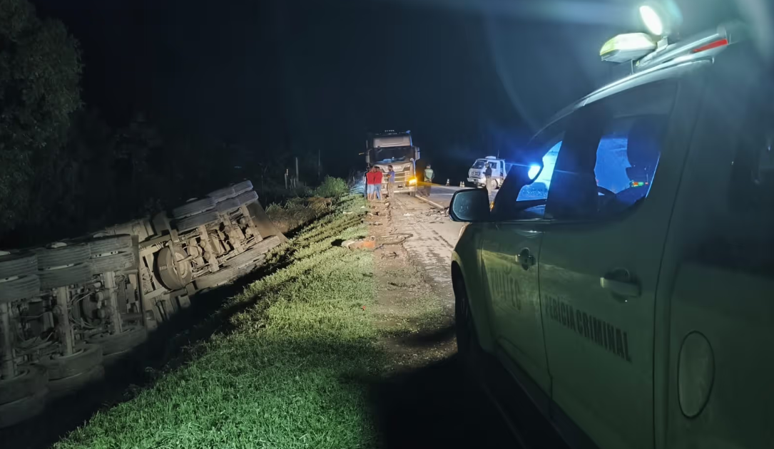 Motociclista morre imprensado entre duas carretas na BR-364; Vídeos