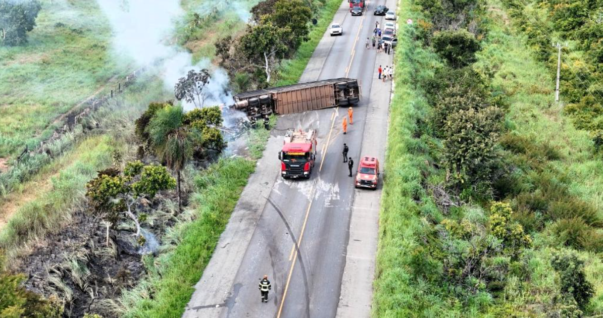 Colisão entre carreta e carro deixa morto e mobiliza bombeiros na BR-070