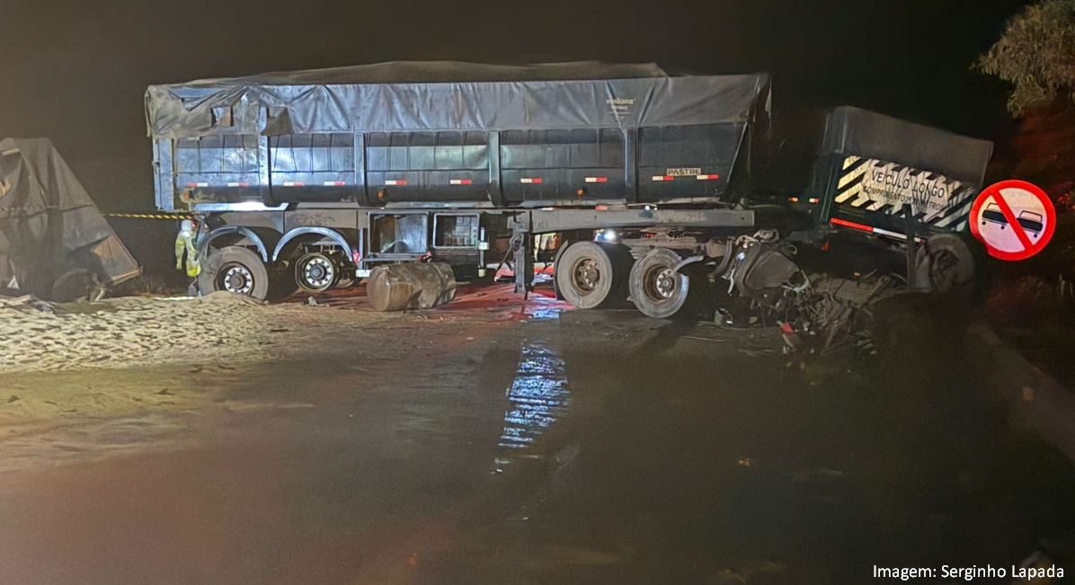 O outro condutor foi identificado como André Ramos Magalhães, de 45 anos, responsável pela carreta branca. As circunstâncias da colisão serão apuradas pelas autoridades, que estiveram no local realizando os procedimentos necessários.