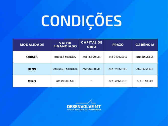 Empresas interessadas podem buscar a Desenvolve MT para informações sobre requisitos, garantias e documentação necessária. O atendimento é feito pelo site da instituição ou pelo telefone (65) 3613-7900.