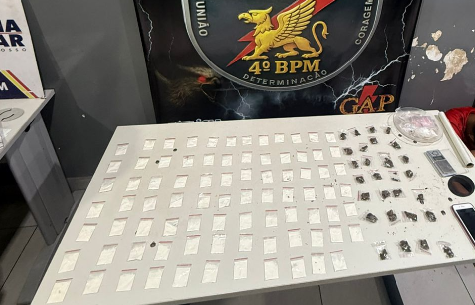Nesta quinta-feira (26.3), policiais militares do Grupo de Apoio (GAP) do 4º Batalhão prenderam um jovem de 20 anos e apreenderam um adolescente de 17 anos por tráfico ilícito de drogas, no bairro São Mateus, em Várzea Grande.
