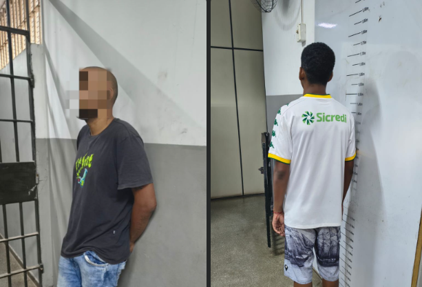 No local, os policiais encontraram dois homens com características semelhantes às informadas. Um deles estava no caixa eletrônico, enquanto o outro permanecia no interior da farmácia. Durante a abordagem, foram apreendidos com um dos suspeitos sete cartões bancários, quatro aparelhos celulares e R$ 9.706 em dinheiro.