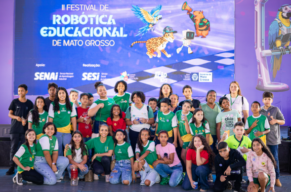 Nesta sexta-feira (14), sessenta e sete estudantes da Escola Rural Profª Hilda Caetano de Oliveira Leite, no Distrito do Sucuri, em Cuiabá, participaram de uma visita especial ao II Festival de Robótica, realizado no Sesi Papa, no bairro Morada do Ouro. O evento segue aberto ao público até domingo (16).