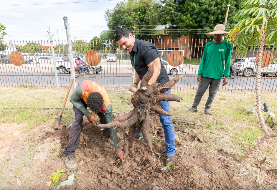 Nesta quinta-feira, equipes técnicas da Secretaria Adjunta de Agricultura realizaram colheita e replantio de mandioca em uma área experimental instalada na Vitrine Tecnológica da Secretaria Municipal de Desenvolvimento Econômico, Turismo, Trabalho e Agricultura (SDTA), em Cuiabá. O projeto é desenvolvido no Parque de Exposições Jonas Pinheiro, em parceria com o Sindicato Rural de Cuiabá, e já contabiliza três colheitas com resultados positivos.