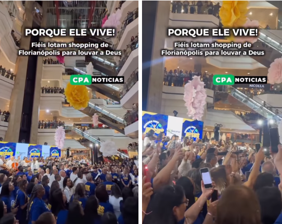 Na segunda-feira (6), o Beiramar Shopping, em Florianópolis (SC), foi palco de um emocionante flash mob cristão, reunindo centenas de fiéis em um grande coral de louvor a Jesus Cristo.
