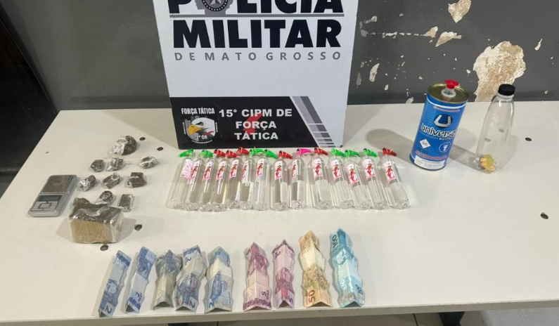 Na segunda-feira (26), policiais militares da Força Tática do 2º Comando Regional prenderam um homem, de 18 anos, e uma mulher, de 34 anos, suspeitos de tráfico ilícito de drogas, durante ações realizadas em Cuiabá e Várzea Grande. Nas ocorrências, foram apreendidos oito tabletes e porções de maconha, além de pasta base, cocaína e frascos de lança-perfume.