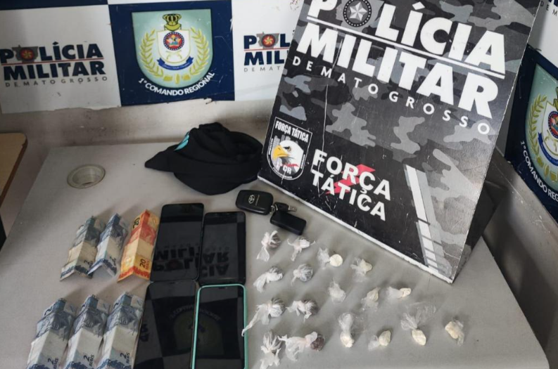 Neste domingo (18), policiais militares da Força Tática do 1º Comando Regional prenderam dois jovens, de 19 e 20 anos, suspeitos de tráfico de drogas e furto, durante ação realizada em Cuiabá. Na ocorrência, a PM apreendeu porções de maconha e cocaína e recuperou um veículo Corolla com registro de furto.