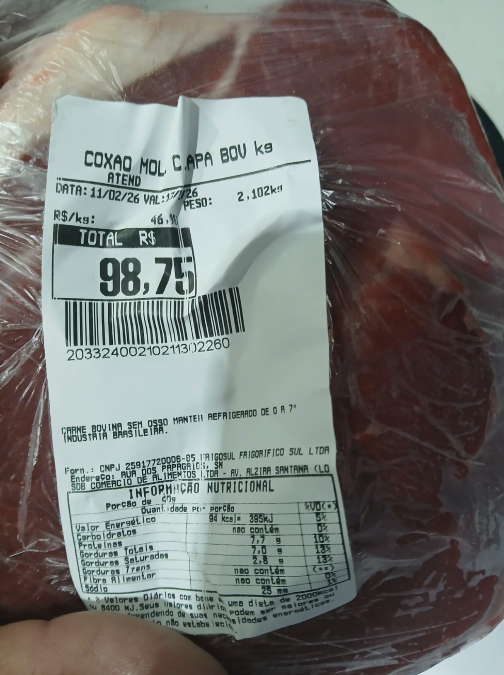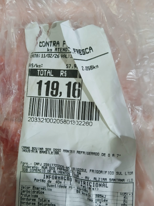Segundo o relato, ele tentou deixar o supermercado sem pagar pelos produtos, adotando estratégia semelhante à utilizada pelo suspeito preso anteriormente. Durante a revista, foram encontrados diversos itens pertencentes ao estabelecimento, entre eles um pacote com 12 unidades de creme dental, uma peça de cerca de 2 kg de coxão mole, outra com pouco mais de 2 kg de contra filé e uma caixa térmica verde usada para transportar os materiais.