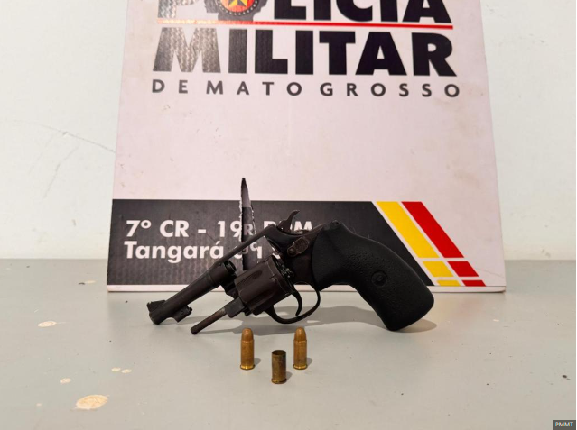 Policiais militares do 19º Batalhão prenderam um homem de 25 anos por posse irregular de arma de fogo, na manhã desta quarta-feira (20.8), em Tangará da Serra. Com ele, a PM apreendeu um revólver e três munições.