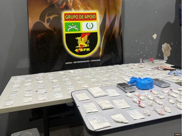 Na revista pessoal, os militares encontraram 22 porções de cocaína. O homem afirmou ser proprietário do estúdio e confessou que usava o local também como ponto de venda de drogas. Em buscas complementares, os policiais localizaram, na casa do suspeito — ao lado do estabelecimento — mais 100 porções da droga, além de utensílios usados no tráfico.