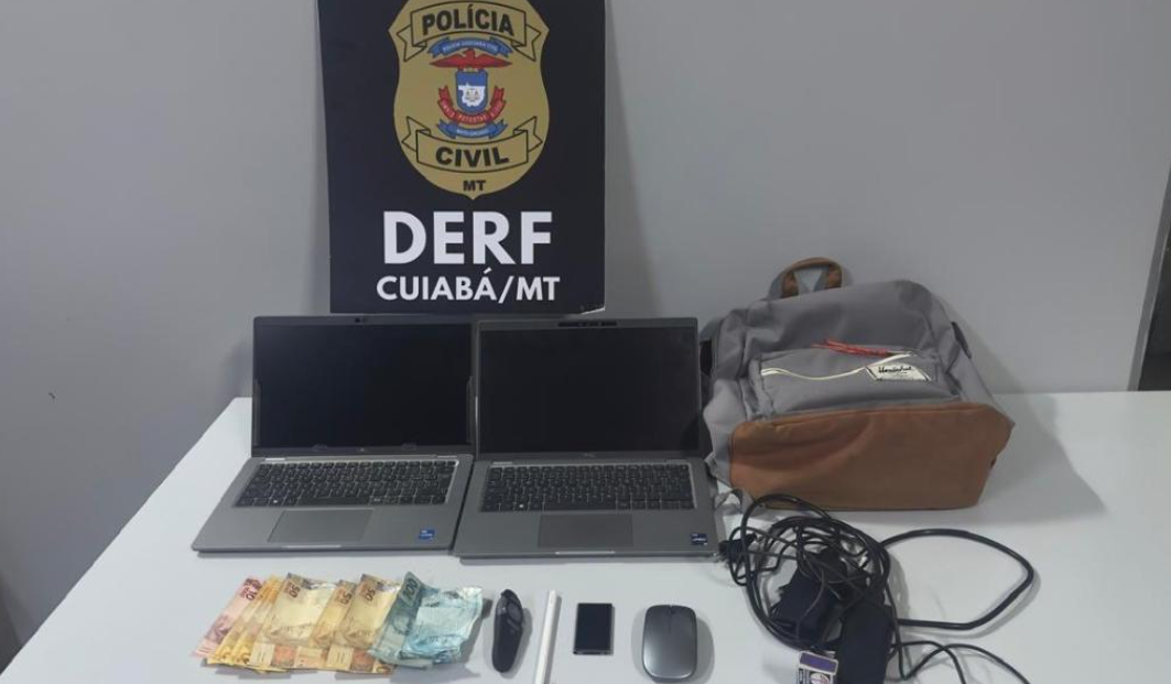 Durante a abordagem, os investigadores apreenderam aparelho celular, dinheiro e notebooks, que estavam em posse do homem. Segundo a polícia, o suspeito chegou a admitir a prática dos furtos.