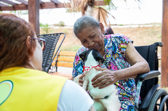 Idosos do Abrigo Bom Jesus recebem visita especial de cães em projeto piloto da Prefeitura