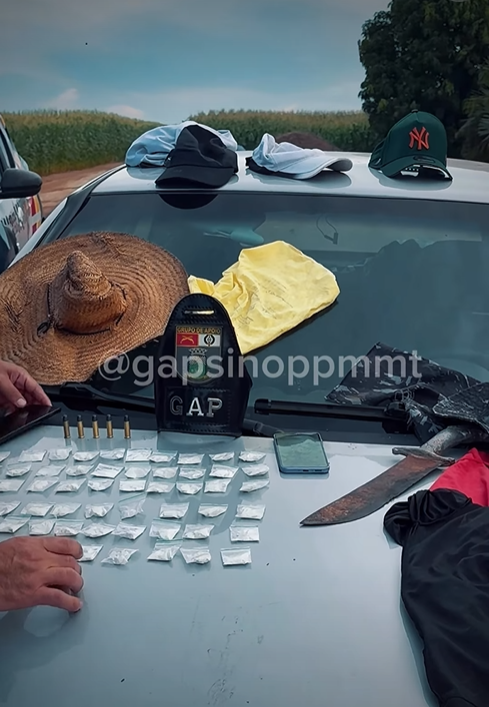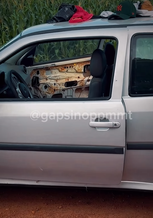 Durante buscas no Sítio Sol Nascente, os policiais encontraram um veículo VW Gol abandonado em meio a uma plantação, com manchas de sangue, levantando indícios de violência no local. No interior do carro, foram apreendidos entorpecentes, munições, uma balança de precisão e objetos possivelmente utilizados no crime.