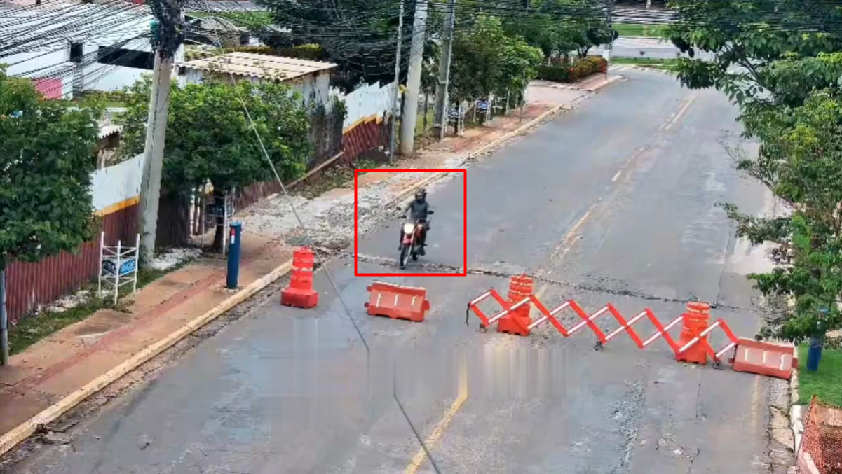 Pelas imagens, é possível ver o momento em que o jovem segue pela via sem perceber a barreira instalada. Ao atingir a corrente, ele foi atingido na região do pescoço, sofrendo um impacto violento que o derrubou imediatamente.