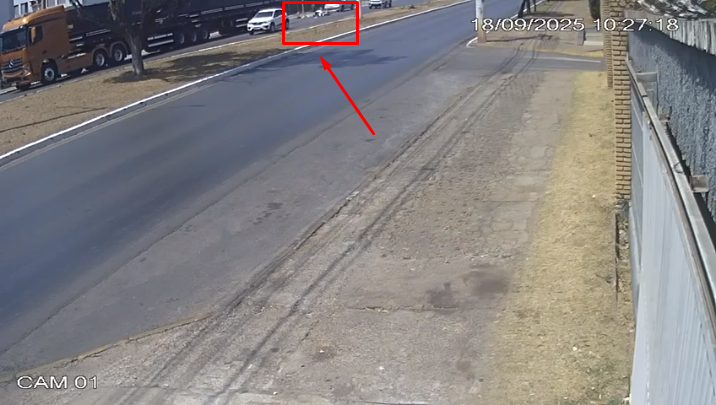 Uma câmera de segurança registrou parte do acidente. Embora o vídeo não mostre o momento exato da colisão, é possível ver que, após a carreta passar, os veículos que vinham atrás precisaram desviar do corpo e da moto caídos na pista.