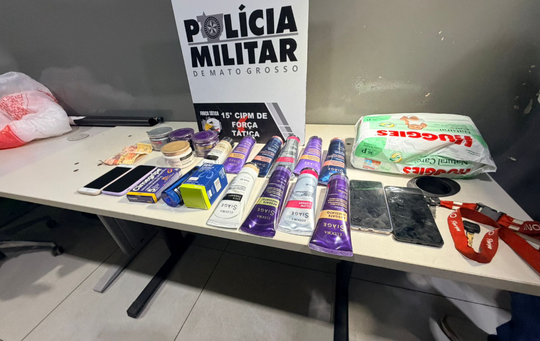 No momento da abordagem, as suspeitas já estavam do lado de fora, próximas às motocicletas utilizadas na ação. Com elas, os policiais encontraram diversos produtos furtados, incluindo fraldas, cosméticos, cremes, hidratantes e xampus.