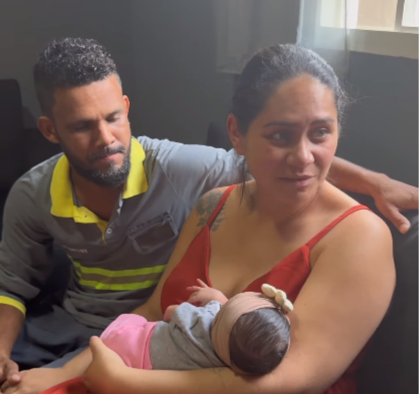Os pais, Jefferson e Jéssica, emocionados, agradeceram aos policiais pela rápida e eficiente ação que salvou a vida da filha.