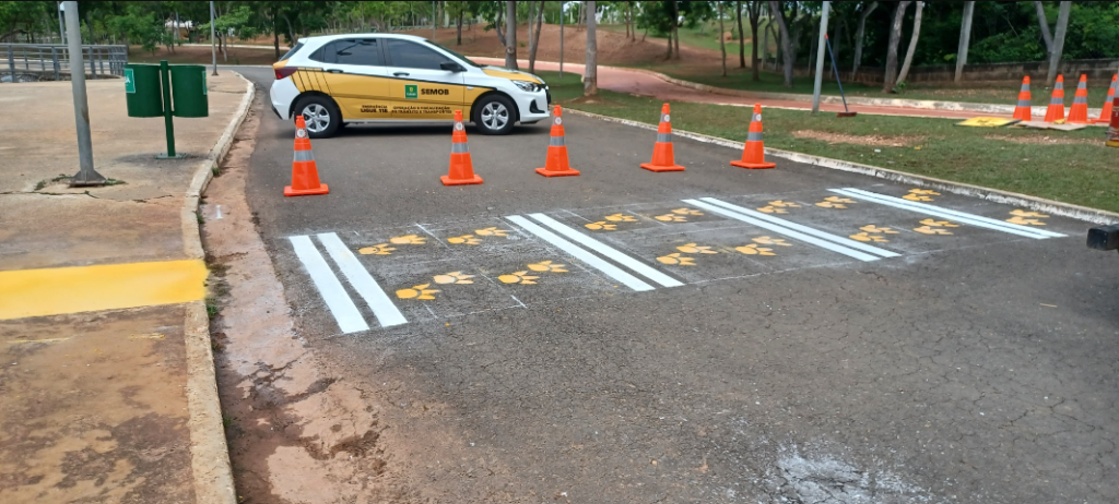 Em uma iniciativa que une respeito à fauna urbana e criatividade, a Prefeitura de Cuiabá, por meio da Secretaria de Mobilidade Urbana (Semob), implementou faixas de pedestres personalizadas no Parque das Águas, destacando as icônicas capivaras. Os animais, que habitam diversos parques da cidade, são símbolo da cultura cuiabana e presença constante no local.