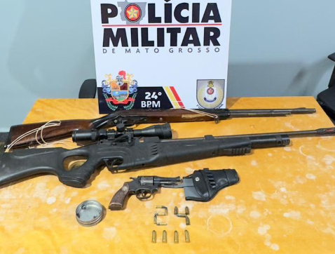 Nesta terça-feira (09), policiais militares do 24º Batalhão impediram um possível feminicídio e apreenderam três armas de fogo em uma residência no bairro Pedra 90, em Cuiabá. A ação ocorreu após o chamado desesperado de uma adolescente, que denunciou as agressões sofridas pela mãe.