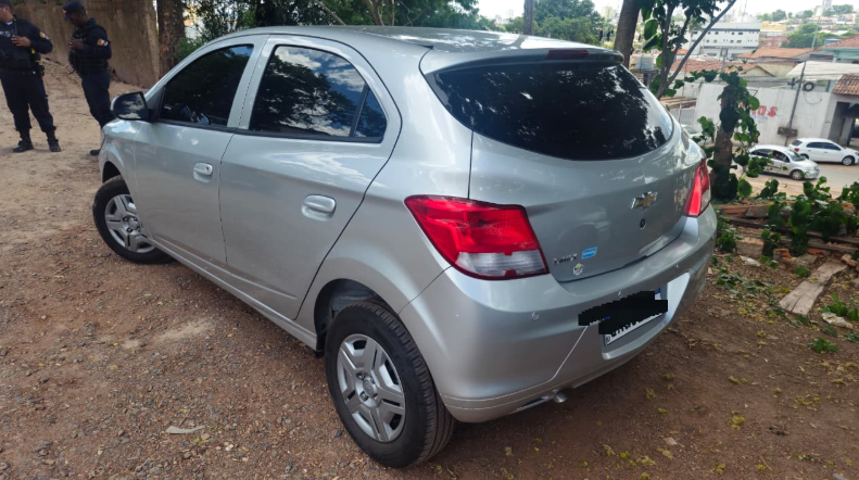 Com os dados repassados via rádio, as equipes iniciaram diligências pela região e conseguiram localizar o veículo roubado, um Chevrolet Onix prata, que havia sido abandonado nas imediações do trevo da Estrada do Moinho, no bairro Jardim Leblon.