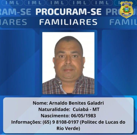 Outro caso é de Arnaldo Benites Galadri, nascido em 06/05/1983, em Cuiabá/MT, vítima de homicídio ocorrido em 24/09/2025, em Lucas do Rio Verde/MT. Ele é filho de Maximina Benites Galadri e Epifânio Galadri.
