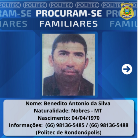A unidade solicita que familiares ou pessoas com informações sobre o homem entrem em contato pelos números oficiais da Politec: (66) 98136-5488.