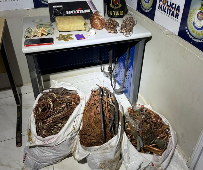 Com autorização, os policiais fizeram buscas na residência e encontraram um tablete de maconha dentro de um guarda-roupas e três sacos grandes de fios de cobre furtados. Nada mais ilícito foi encontrado.