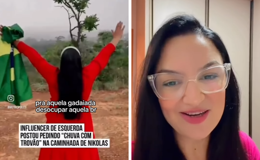 No domingo (25), a vereadora e primeira-dama de Cuiabá, Samantha Iris (PL), criticou duramente um vídeo que circula nas redes sociais mostrando uma mulher que se declara cristã e de esquerda, orando para que Deus enviasse chuva com trovões contra manifestantes da “Caminhada pela Justiça e Liberdade”, realizada em Brasília.