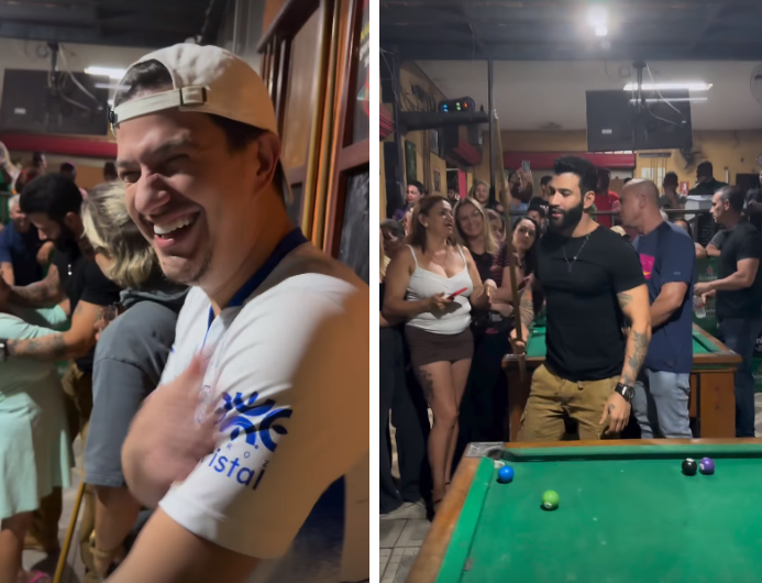 Sertanejos aparecem de surpresa em bar e multidão acompanha; Vídeo