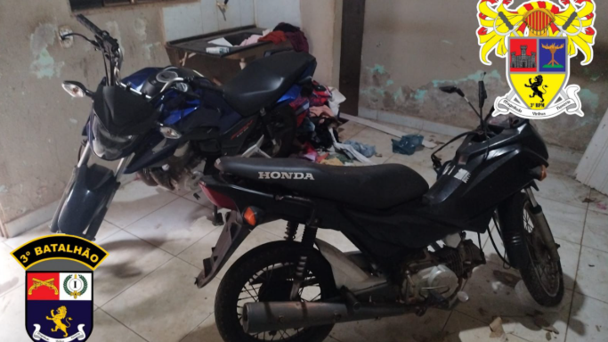 Durante a ocorrência, o suspeito revelou morar em uma kitnet em frente ao campo de futebol. Com a autorização dele, as equipes entraram no imóvel e encontraram duas motocicletas sem placas — uma Honda Pop preta, sem guidão, e uma Honda Fan 160 azul. Após checagem dos números de chassi, foi constatado que ambos os veículos eram produtos de furto, oriundos do pátio da Delegacia Especializada de Roubos e Furtos de Veículos Automotores (DERFVA).